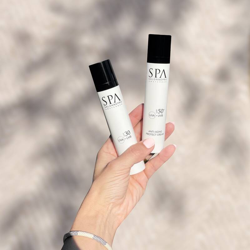 Voor een optimale bescherming adviseer ik om ‘s ochtends een SPF-crème te gebruiken als basisbescherming en gedurende de dag bij te werken met een mineraal poeder met SPF. Op die manier blijft je huid de hele dag goed beschermd tegen schadelijke UV-stralen.